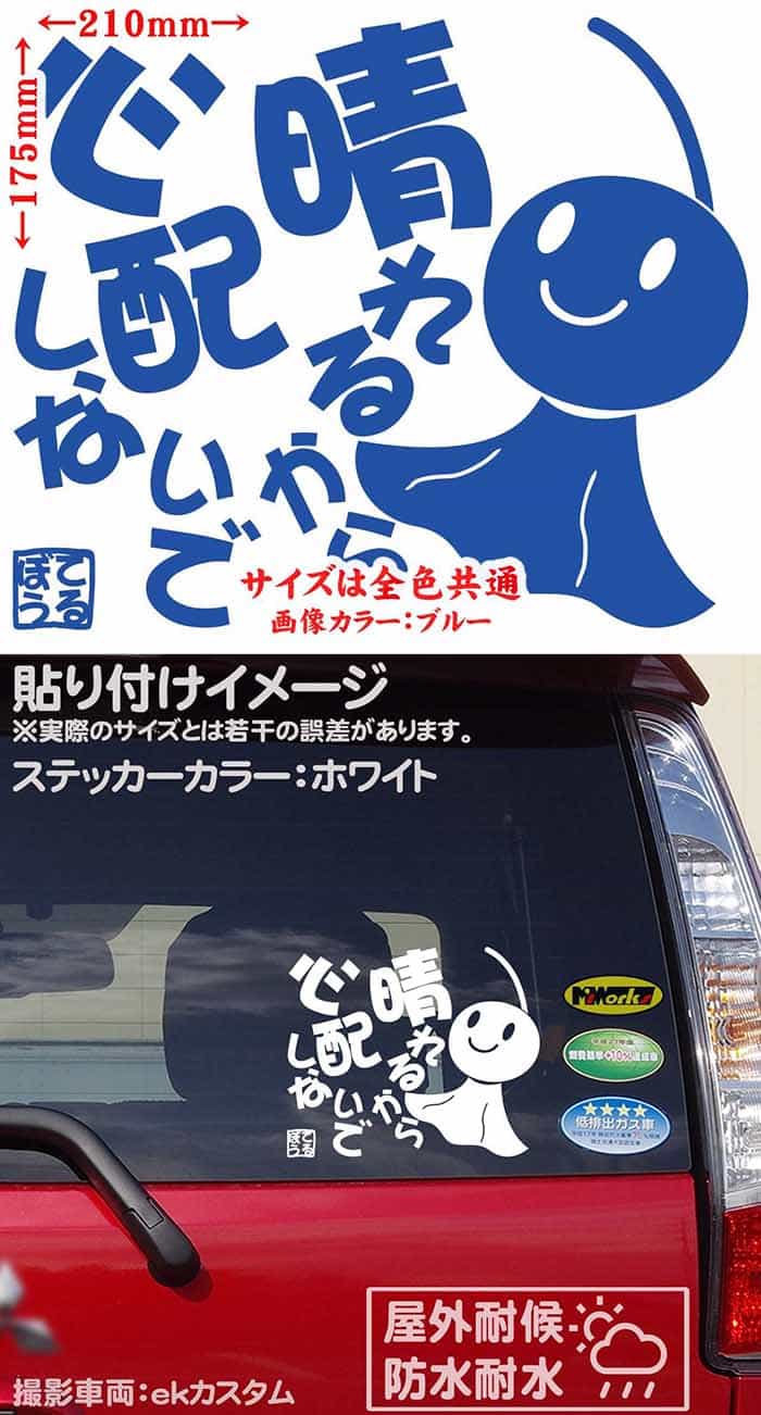 【クーポン有】 車 バイク ユニーク おもしろ ステッカー てるてる坊主 てるぼう 4 晴れるから心配しないで サイズL カッティングステッカー かわいい 面白 格言 タンク てるてる坊主 ステッカー チューン 防水 アウトドア 耐水 シール 全12色 約175mmX約210mm TRBO-04B