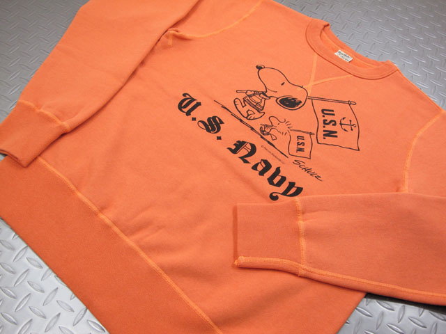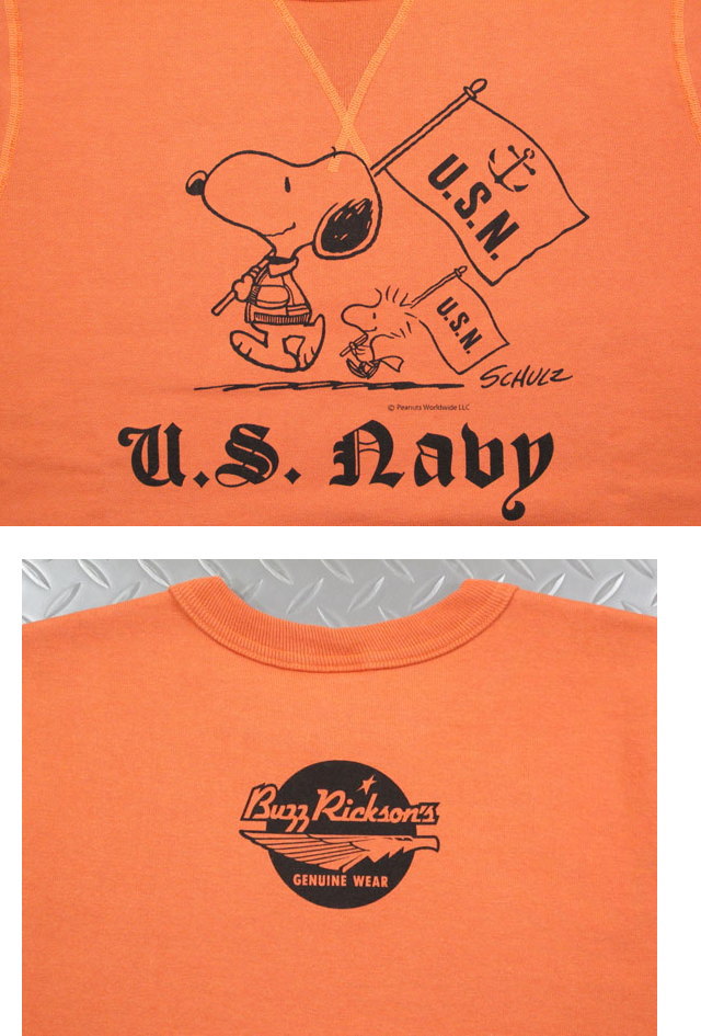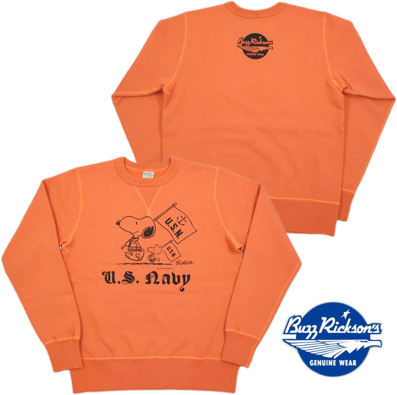BUZZ RICKSON'S×PEANUTS /バズリクソンズ×ピーナッツ SET-IN CREW SWEAT“U.S. NAVY”スヌーピー・バズスウェットシャツ/トレーナー ORANGE(オレンジ)/BR67463